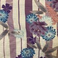 【浴衣リメイク ミニミディ ワンピース ドレス 名古屋帯サッシュベルト付 和洋折衷 レトロ 古着 ハンドメイド 藤霞のストライプに瑠璃菊と牡丹が咲き競う W-650】
