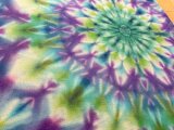 全て染色されるタイダイ染め、絞り染めの作品群。