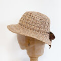 フレッシュなカカオを彷彿させる色の帽子です。様々な色が入っているため、お洋服も合わせやすく、また、お顔映りが良い色味だと思います。夏の暑い日々、後部で髪を結びたい時にも被れるように作りました。麻糸で編み込み模様を施し、一部に隙間を作ることで涼しくお被りいただけます。後部のグログランリボンでサイズ調節もできます。