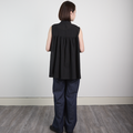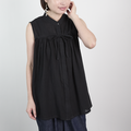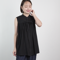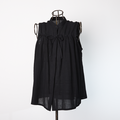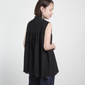 サラッと軽くて通気性◎ ライトコットン リボン ノースリーブ シャツ ブラック 0735BK