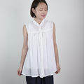 サラッと軽くて通気性◎ ライトコットン リボン ノースリーブ シャツ ホワイト 0735WH