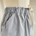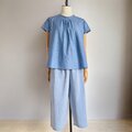 ・パンツは股上深めのゆったりシルエット。ウエストは総ゴム+調節紐入り