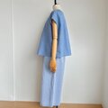 ハイネックブラウス ワイドパンツ セットアップ【送料込み】古布リメイク ブルー