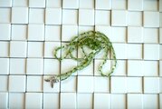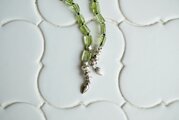 ラリエットの両先端にはしずく型の小さなシルバーチャームを下げてみました。