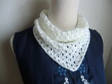 上質なリネン糸を使って編んだ小さめ三角ストールです。