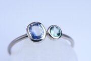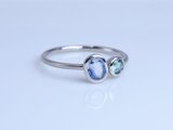 サファイアとコーネルピン、ふたつの石が響き合うプラチナリングです。