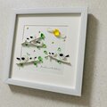 シーグラスアート 海の宝石 シマエナガの家族 風景画 インテリア雑貨 観葉植物 北欧ガラス細工 贈り物 誕生日プレゼントの