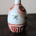 【サマー特価¥2200→¥1100】一輪挿しにも◆草花と蝶々。瀬戸焼 赤絵金彩徳利 インテリア 古民家 花器 花瓶 明治〜大正期