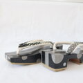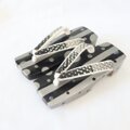 S 四角い下駄 三味右近 水玉 黒 シルバー