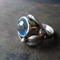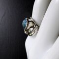 瑞々しいブルー、そしてカットがとても美しいトパーズを、優しく葉で包み込んでいるデザインです。 燻加工で葉の陰影も美しく、とても美しいリングでした。
