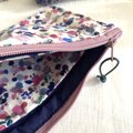 リバティプリントのタナローン生地を使って仕切り付きの使いやすいフラットポーチを作りました。