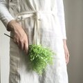 素材に高品質な素材、ベルギーリネン25番手を使用したワークエプロンです。