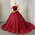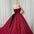 カラードレス ボルドー色 ベアトップ キラキラスパンコール ロングトレーン 花嫁