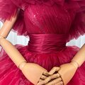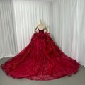 豪華!カラードレス ボルドー色 ベアトップ キラキラスパンコール ラッフルフリル ボリュームドレス 花嫁