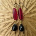 アンティーク ウェディングビーズ 雫 黒 + ボヘミアン 赤 ピアス&イヤリング 百世 momotose(西)
