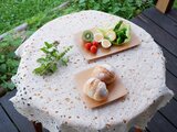 長皿にはサラダや卵、フルーツが似合いそうです。角皿はパン皿にいかがでしょうか。