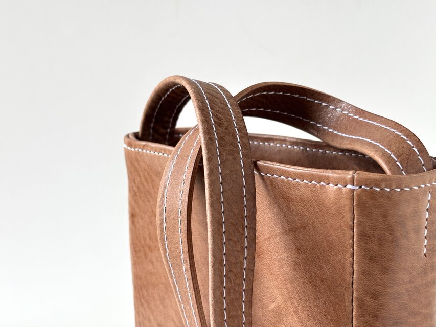 ・耐久性に優れた構造:内部と底に芯材を使用し、型崩れ防止と耐久性を強化。肩ストラップは一枚革で仕上げ、伸び止めテープを挟み込み強度と確保。