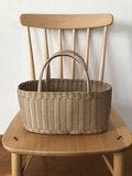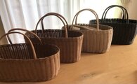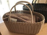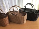カゴはとても軽くてこれからの季節に楽しんで使っていただけるかと思います!持ち手の部分は、少し強度を持たせるために本体と繋げて作っております。