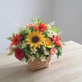 フェルトの花*サニーカラーひまわりの花カゴ*フェルトフラワー アレンジメント アートフラワー 向日葵