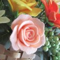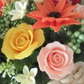 フェルトフラワーの魅力は、柔らかい風合いと、温かみのある質感。