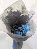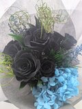 プリザーブドフラワー/黒薔薇7輪と緑と青い紫陽花の花束(黒薔薇の魔法発動中シリーズ)