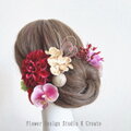 赤いダリアと胡蝶蘭のヘッドドレス 赤 結婚式 成人式 前撮り 白無垢 卒業式 袴 振袖 卒業式 入学式