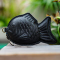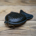 <試作品> 本革たい焼き小物入れ【鉄黒/てつぐろ】※床革