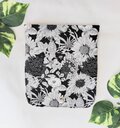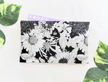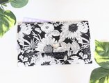 リバティスイムダンクレア柄ブラック、薄くて軽い綿タナローン生地のお薬手帳とカードのケースとしてお使い頂けるフラップ付きケースです。