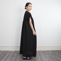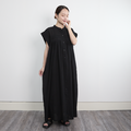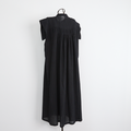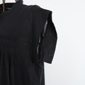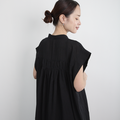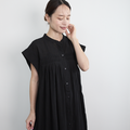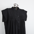 【着丈調整可能】ライトコットン ピンタックギャザー シャツワンピース ブラック 0701BK