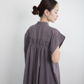 【着丈調整可能】ライトコットン ピンタックギャザー シャツワンピース レトロパープル 0701R.Pp