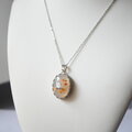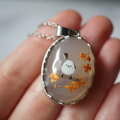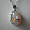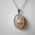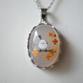 白瑪瑙とシマエナガ、金木犀のペンダント(金沢箔24K使用)