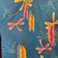 【浴衣リメイク ミニミディ ワンピース ドレス 帯サッシュベルト付 和洋折衷 レトロ 古着 ハンドメイド ターコイズブルーに、ピンク・イエローのトンボと矢が駆け抜ける W-658】