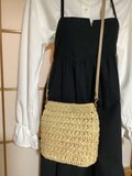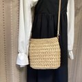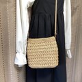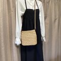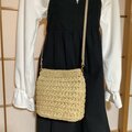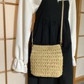 バッグ バック 手編み かぎ針編み 模様編み 籠バッグ カゴバッグ ベージュ 自然素材 軽い 夏バッグ 人気 流行 春 大人 シンプル 可愛い 春夏 夏 小さめ お出かけ ショルダーバッグ 斜め掛け エコアンダリヤ 編みバッグ マグネットボタン