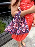 リバーシブルあずま袋 パープル 華やかな花柄 〈あずま袋・ブロックプリント・ダブルガーゼ・コットン〉