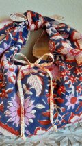 早速のお届けありがとうございます。 藍で染めた物が大好きで、つい注文してしまいました。色んな布で作られていて、色合いも、とっても素敵です。ちょっと小さめですので、使い方を工夫して使ってみようと思います。