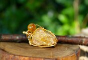 ゴールドの光に合わせて、ゴールドのワイヤーで巻いて、同じく美しいゴールドのシトリンの大玉ビーズを合わせました。