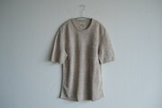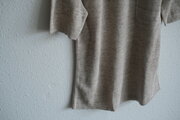 1重のニットで、生地は薄すぎず綺麗な張りと落ち感があり、すっきりとシャープで上品な印象があります。襟ぐりの開き具合や身幅、裾の長さなど、半袖カットソーながらカジュアルすぎず綺麗目で美しいデザインパターン。身体の線を拾わず、すとんと落ちるシルエットです。