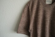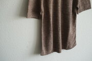 1重のニットで、生地は薄すぎず綺麗な張りと落ち感があり、すっきりとシャープで上品な印象があります。襟ぐりの開き具合や身幅、裾の長さなど、半袖カットソーながらカジュアルすぎず綺麗目で美しいデザインパターン。身体の線を拾わず、すとんと落ちるシルエットです。