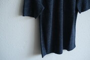 1重のニットで、生地は薄すぎず綺麗な張りと落ち感があり、すっきりとシャープで上品な印象があります。襟ぐりの開き具合や身幅、裾の長さなど、半袖カットソーながらカジュアルすぎず綺麗目で美しいデザインパターン。身体の線を拾わず、すとんと落ちるシルエットです。