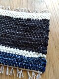 縦糸も生成りの麻糸です。裂き布を活かすために、粗めの密度にしたので刺し子のようにも見えます。