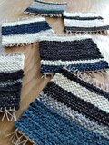 洋服の生地のハギレを使い、裂き織りのコースターを織りました。