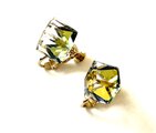 【ビンテージ オーストリア製 スワロフスキー クリスタルサハラ 大粒 斜めキューブ イヤリング】