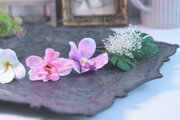 プルメリアとオーキッドのヘッドドレス 結婚式 ヘッドドレス ウェディング 花嫁ヘア プルメリア オーキッド 白 リゾ婚