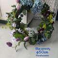 【迫力の50cm!】ジャパンブルーで和モダンに!!パーティーにも最適なアジサイの爽やかリース ボリューミーな作品です