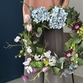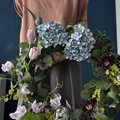 色鮮やかなブルー系の紫陽花が一足早く部屋の中で咲いたようで、部屋が一段明るく華やぎました。 とても素敵なブーケを作って頂き、どうもありがとうございました!
