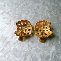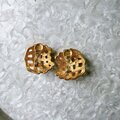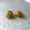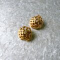 ゴールドトーンのドーム型のバスケット編みイヤリング。