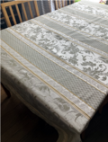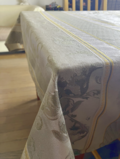 コチラの大きいサイズ(140×278cm)の美しいジャガード織りテーブルクロスは、