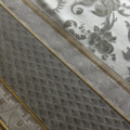 抑え目なグリーンに、黄色とベージュの糸が織り成す柄は、