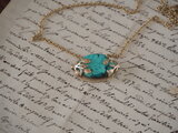 不思議なリズムを持つチベット僧侶たちの読経を聴いていると、その意味は分からなくても心が落ち着き違う世界への扉が開くような気がします。チベットでは、何千年も昔からターコイズが人々の暮らしに根づき、今なお多くの人が身につける大切な石とされているそうです。おもに深いブルーグリーンの石が多いのですが、今回見つけたのは、珍しく明るいブルーの美しい石でした。目があった途端に、選ぶべき石!というインスピレーションが降りてきました。生きとし生けるものたちへの祈りとしてチベット僧侶たちの読経があるように、私も祈りを込めて制作しました。