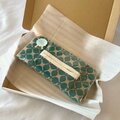本日届きました。落ち着いた水色がとても素敵です。軽くて可愛いくて、誰ともかぶらないお財布で、明日から楽しく暮らせそうです。ありがとうございました!